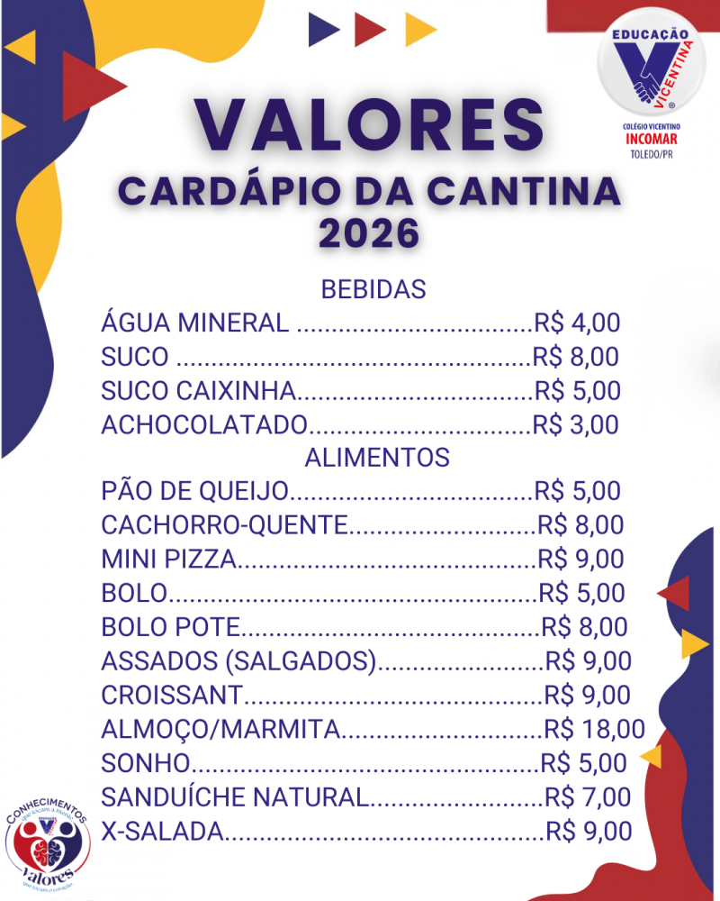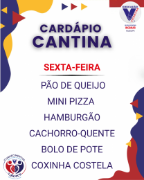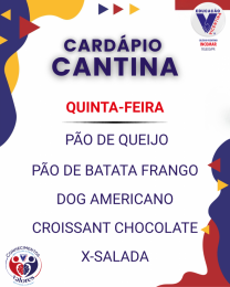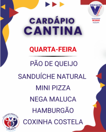 → Confira abaixo o cardápio semanal da cantina. (Clique nas imagens abaixo para ampliá-las.)