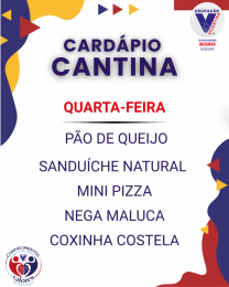 → Confira abaixo o cardápio semanal da cantina. (Clique nas imagens para ampliá-las.)